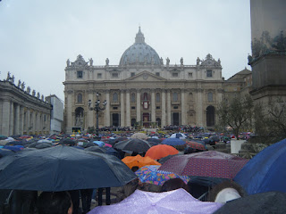 We arrived in Roma to find it cold and rainy. For some reason we were not supprised; rain almost seems to be synonomous with Easter. There was only one place we had planned on going for Easter in Roma, to see the Pope. Thousands of people make the pilgramage every year so we decided to join in.