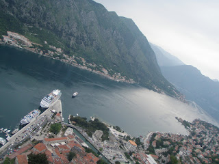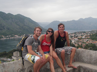 From Dubrovnik…our plan was to make our way to Greece, but to stop at some cool places along the way! As we boarded the bus, we were both sad to leave Croatia, but excited to see a new country…especially one we hadn’t even planned to visit originally! It was only a couple hour bus ride to Kotor, Montenegro, and it went by super fast thanks to our new found friend, Johnny from San Diego. We all got off together unsure of what we wanted to do, but soon realized we wanted to hike up to the fortress on top of the mountain! First we stopped to enjoy some lunch and fresh strawberries from the market, and then went on to a surprisingly hard hike.