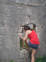 Climbing around the fort!